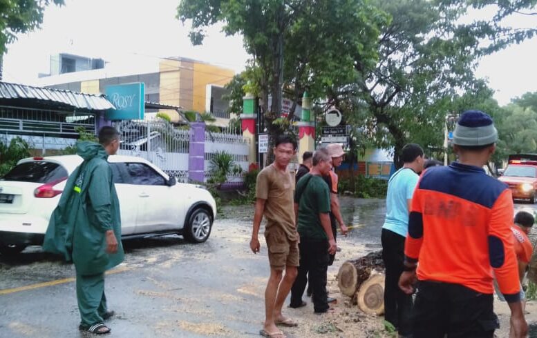 Mataram, NTB – Hujan deras disertai angin kencang yang melanda sejumlah wilayah Kota Mataram, mengakibatkan sebuah pohon besar tumbang di Jalan Arya Banjar Getas, Kelurahan Ampenan Selatan. Insiden ini sempat menghambat arus lalu lintas dan membahayakan warga sekitar.
