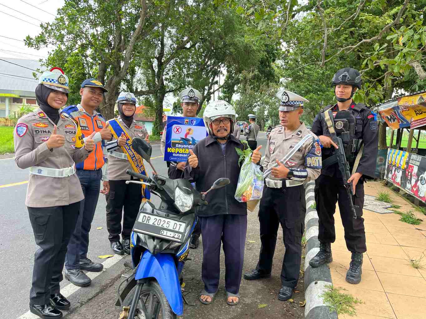 Uniknya, dalam operasi kali ini, Polres Lombok Barat memberikan reward atau penghargaan berupa sayuran kepada para pengguna jalan yang tertib berlalu lintas. Langkah ini sebagai bentuk dukungan terhadap program ketahanan pangan sekaligus upaya meningkatkan kesadaran masyarakat akan pentingnya keselamatan berlalu lintas.