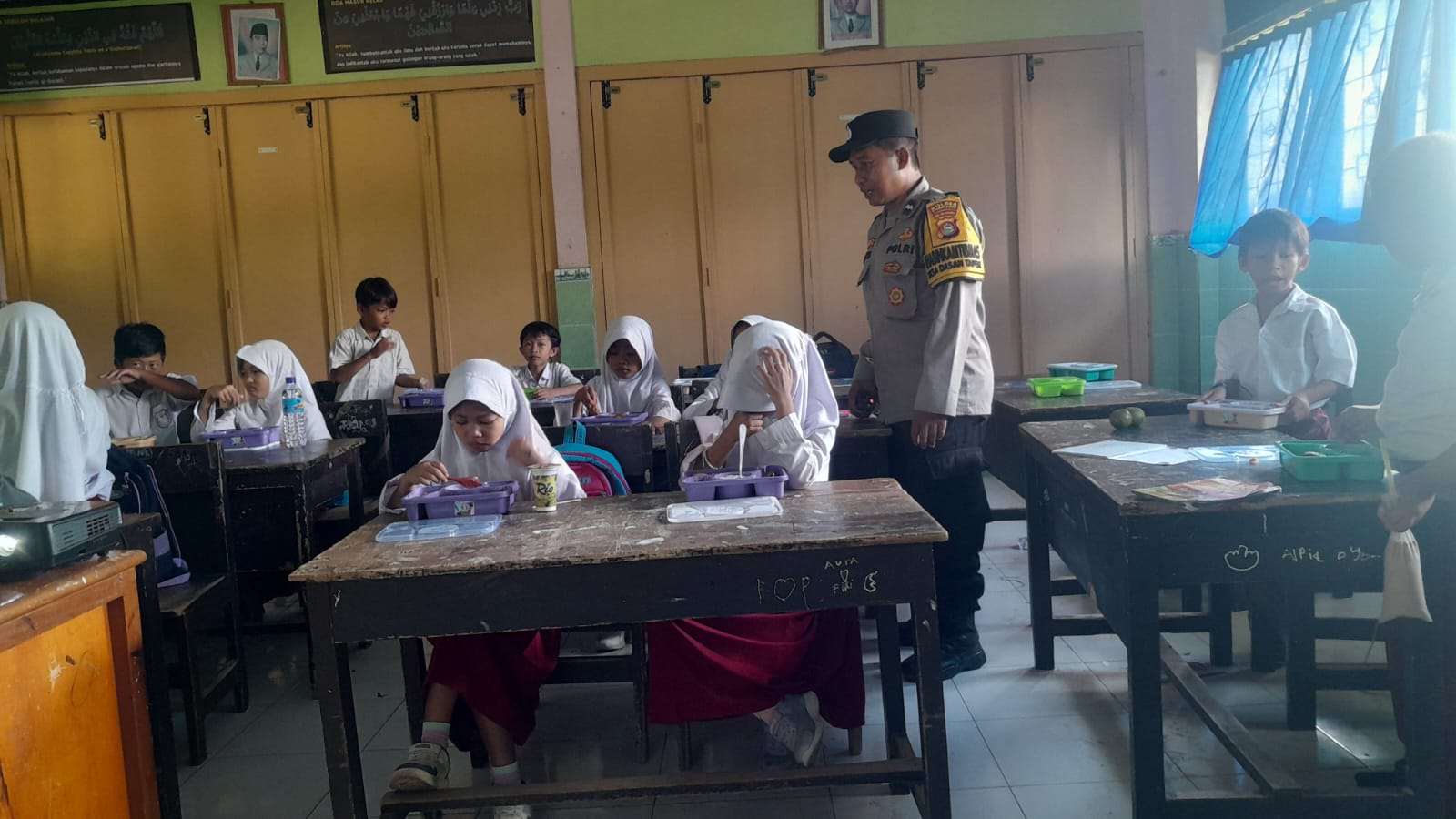 Bhabinkamtibmas Gerung Pastikan Makan Bergizi Gratis Aman & Lancar