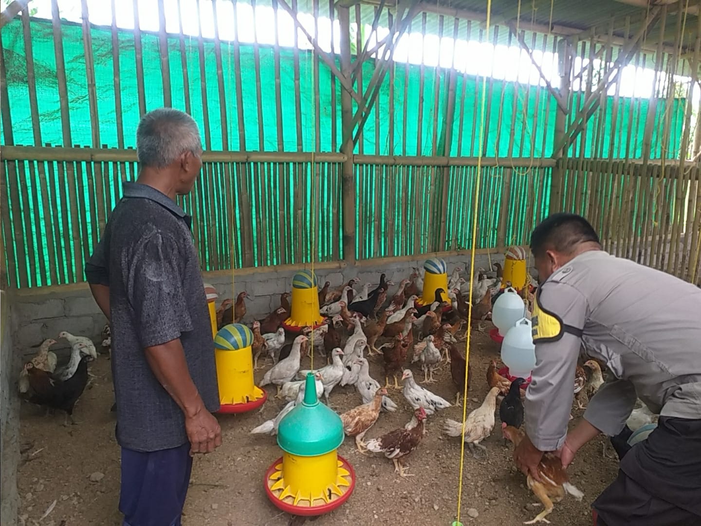 Kunjungi Peternak Ayam, Bhabinkamtibmas Sosialisasikan Ketahanan Pangan