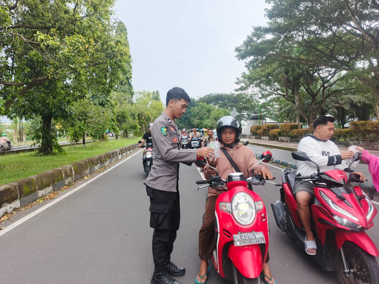 Gerung, Lombok Barat – Kepolisian Resor (Polres) Lombok Barat melalui Satuan Samapta (Sat Samapta) menggelar kegiatan berbagi takjil kepada masyarakat yang melintas di sekitar Taman Kota Giri Menang, Gerung, Lombok Barat. Kegiatan yang dilaksanakan pada Senin (24/3/2025) sore ini bertujuan untuk mempererat tali silaturahmi antara Polri dan masyarakat, sekaligus sebagai wujud kepedulian terhadap sesama, terutama di bulan suci Ramadan.