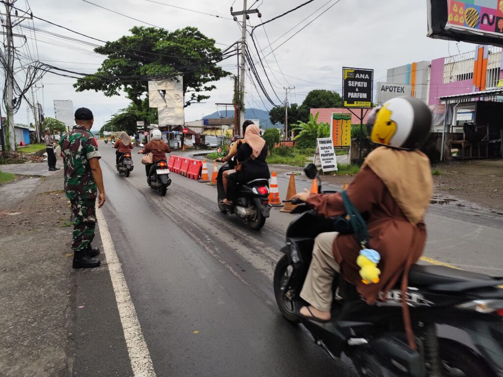 Selain mengatur lalu lintas, personel juga aktif melakukan patroli dan memantau kondisi keamanan di sekitar pos pengamanan.
