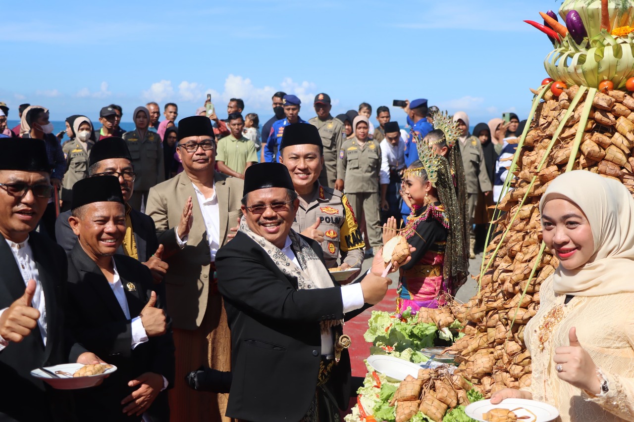 Rombongan kemudian berjalan menuju lokasi utama acara di Pantai Duduk 3, di mana berbagai kegiatan seperti sambutan, lomba tradisional, dan penentuan juara lomba dulang pesaji dilaksanakan.