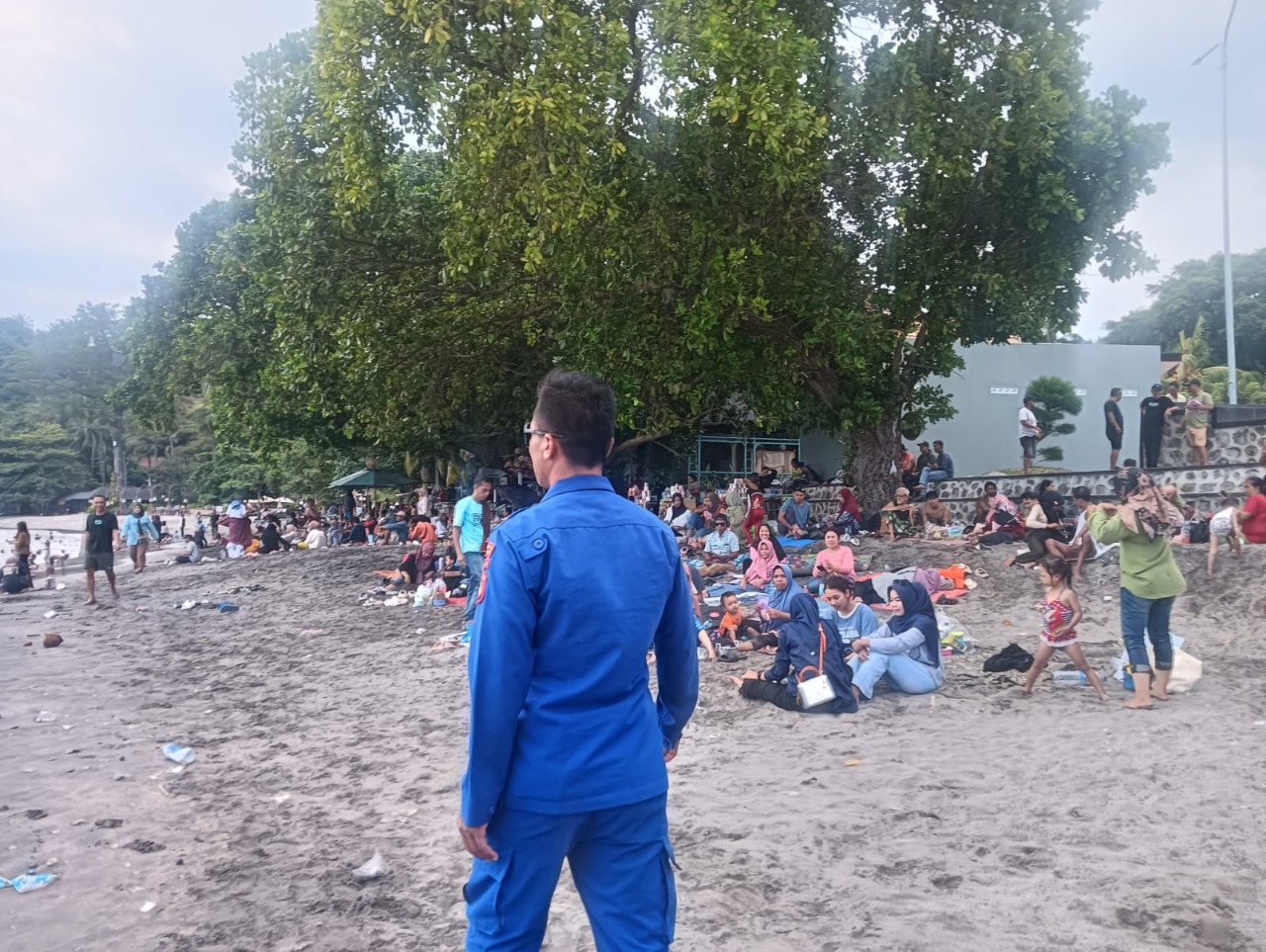 Selain melakukan pengawasan, yang mana personel di lapangan juga aktif memberikan imbauan keselamatan kepada para pengunjung pantai.