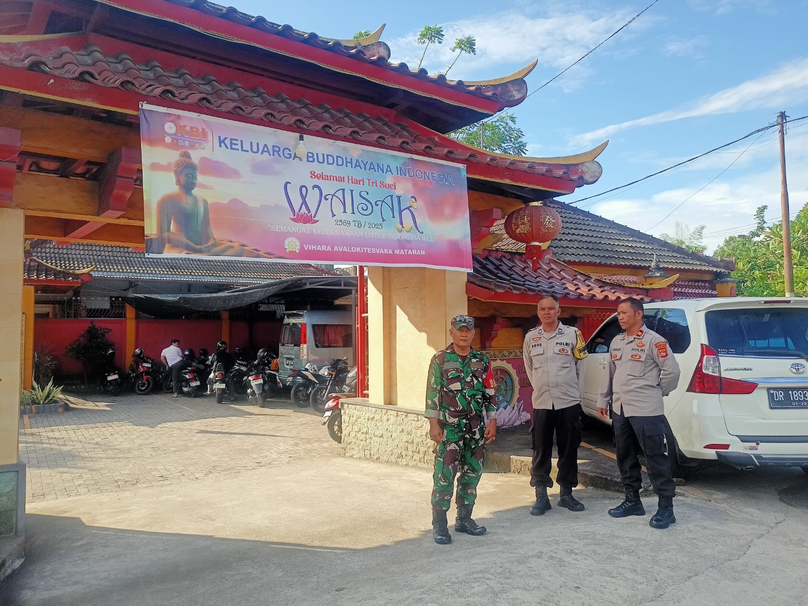 “Kami menjamin umat Buddha dapat merayakan Waisak dengan tenang. TNI-Polri hadir untuk menjaga situasi tetap kondusif dan memberikan rasa aman kepada masyarakat,” ujar Danramil 1606-01/Cakranegara, Kapten Inf Iwan Suryawinarto.