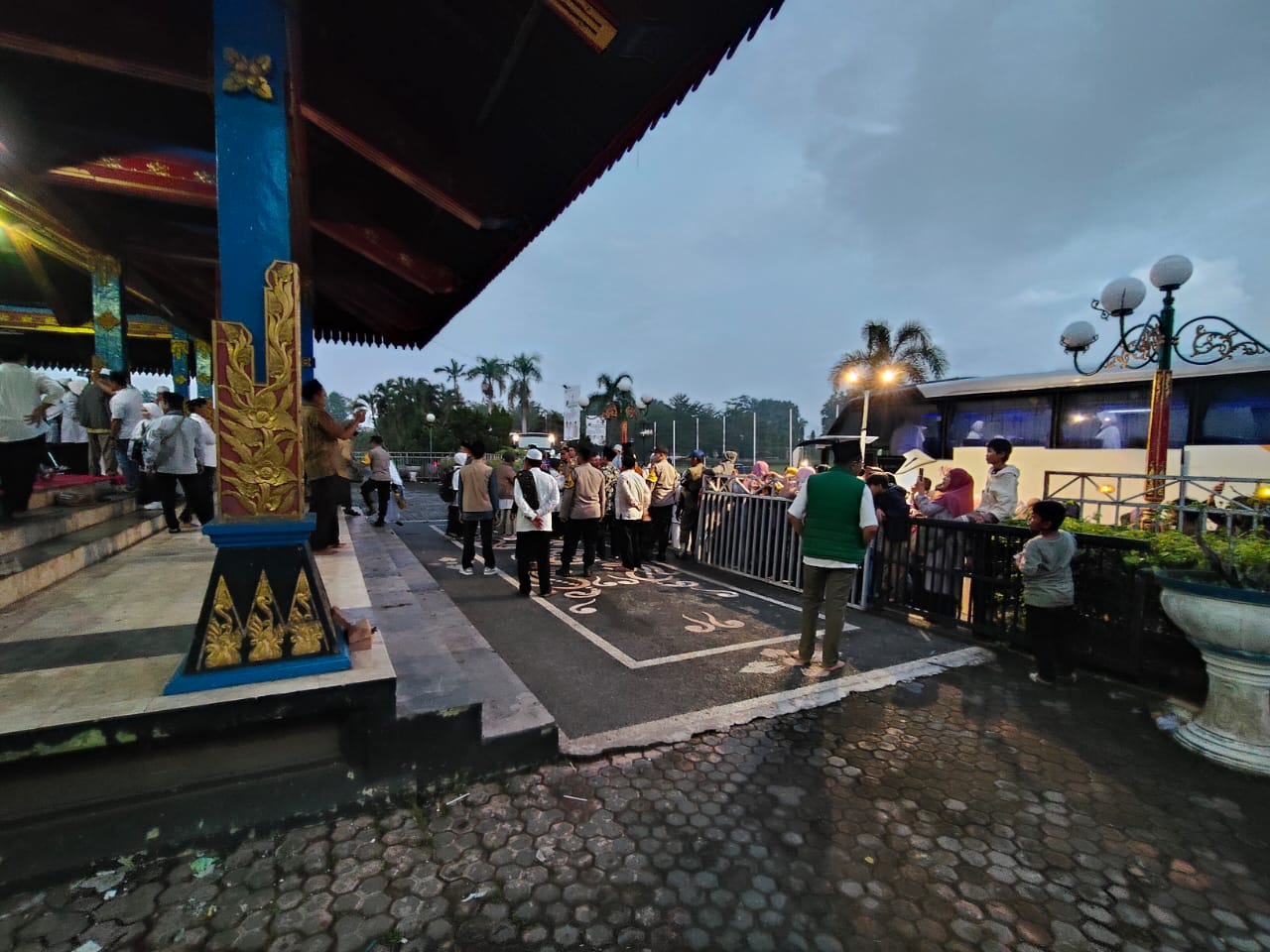 Suasana haru dan khidmat menyelimuti area Bencingah saat doa dipanjatkan. Setelah itu, para calon haji bergerak menuju lima unit bus yang telah disiapkan oleh panitia untuk mengantarkan mereka ke embarkasi atau asrama haji sebelum penerbangan ke Tanah Suci.