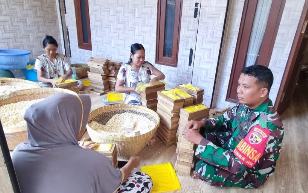 Pada kunjungan tersebut, Babinsa berbincang hangat dengan Suparmin, seorang pelaku usaha mikro yang telah puluhan tahun memproduksi tempe secara tradisional untuk memenuhi kebutuhan pasar lokal.