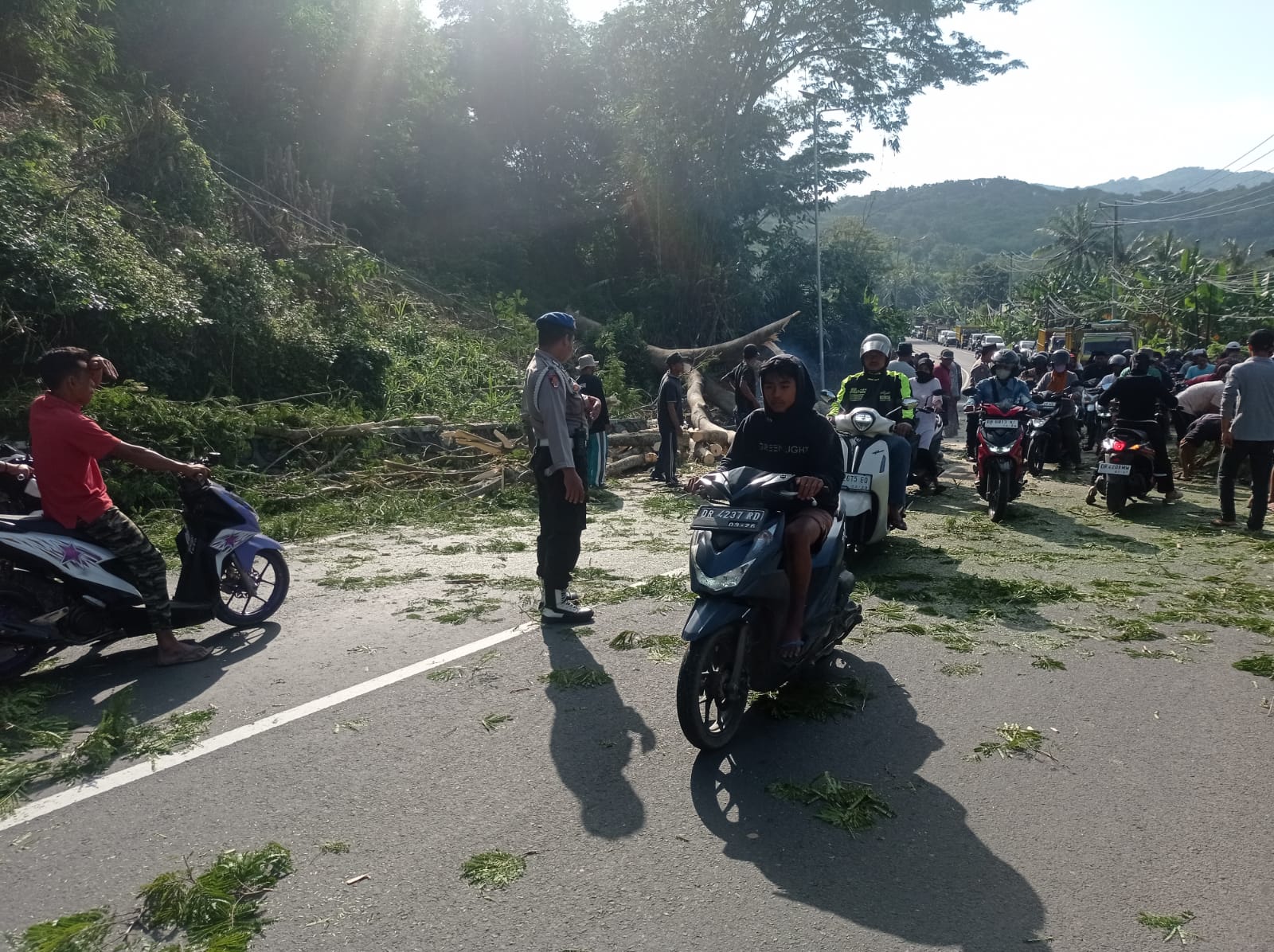 Polisi Kawal Pemangkasan Pohon di Lembar Selatan, Arus Lalin Tetap Lancar