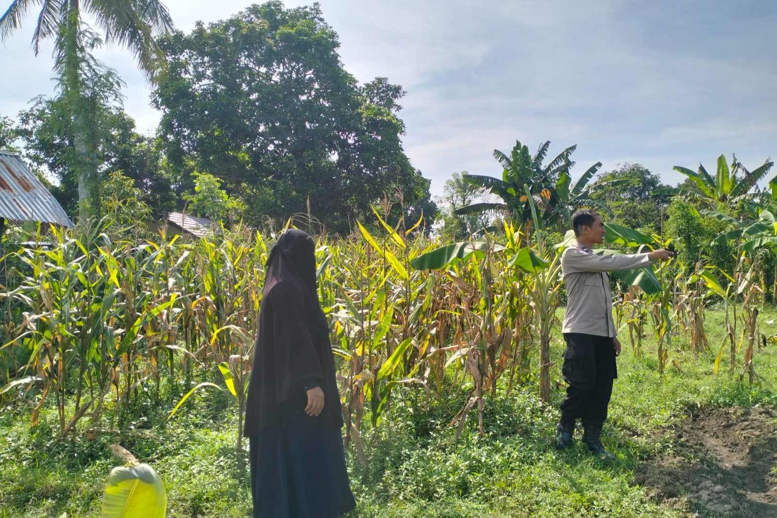 Bhabinkamtibmas Desa Lelede, secara aktif melaksanakan kegiatan sambang ke lahan jagung milik Idris di Dusun Kebon Daye Indah, Desa Lelede, Senin (26/5/2025).