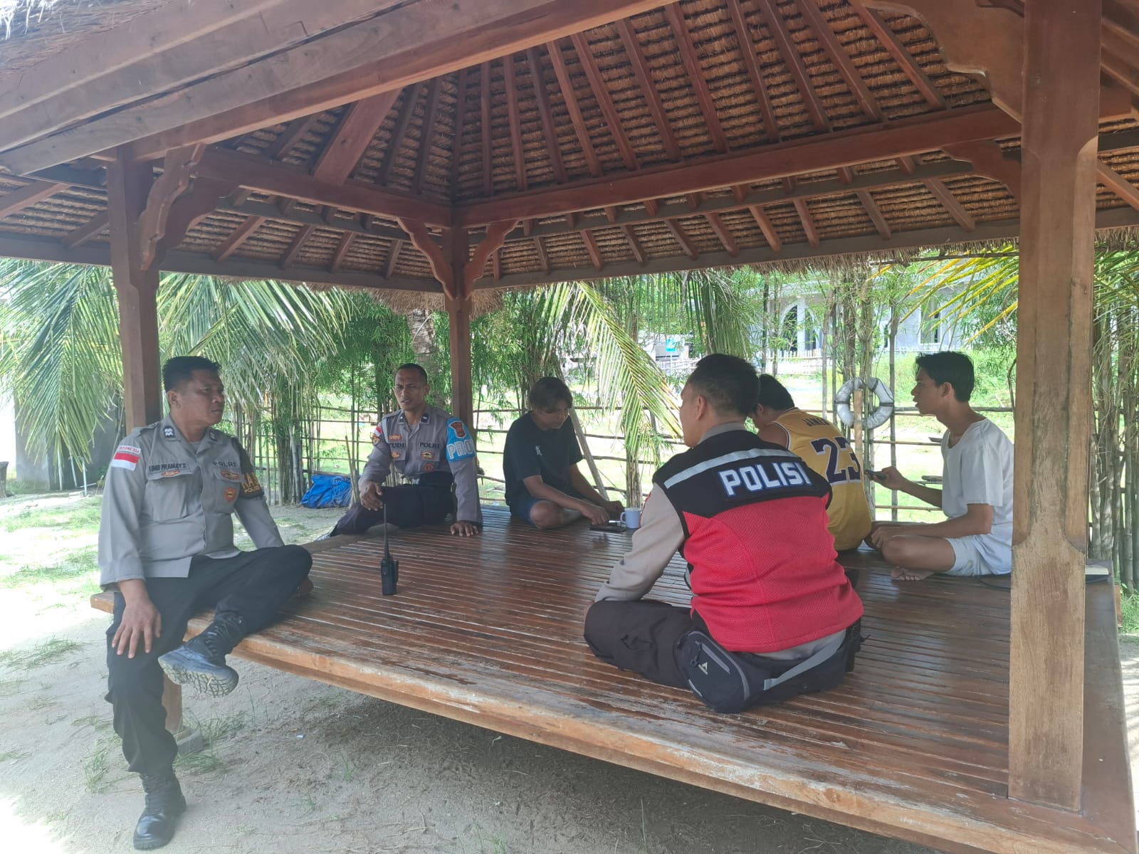 Personel Polsek Sekotong tidak hanya berpatroli, tetapi juga bersilaturahmi dengan warga dan pemuda setempat.