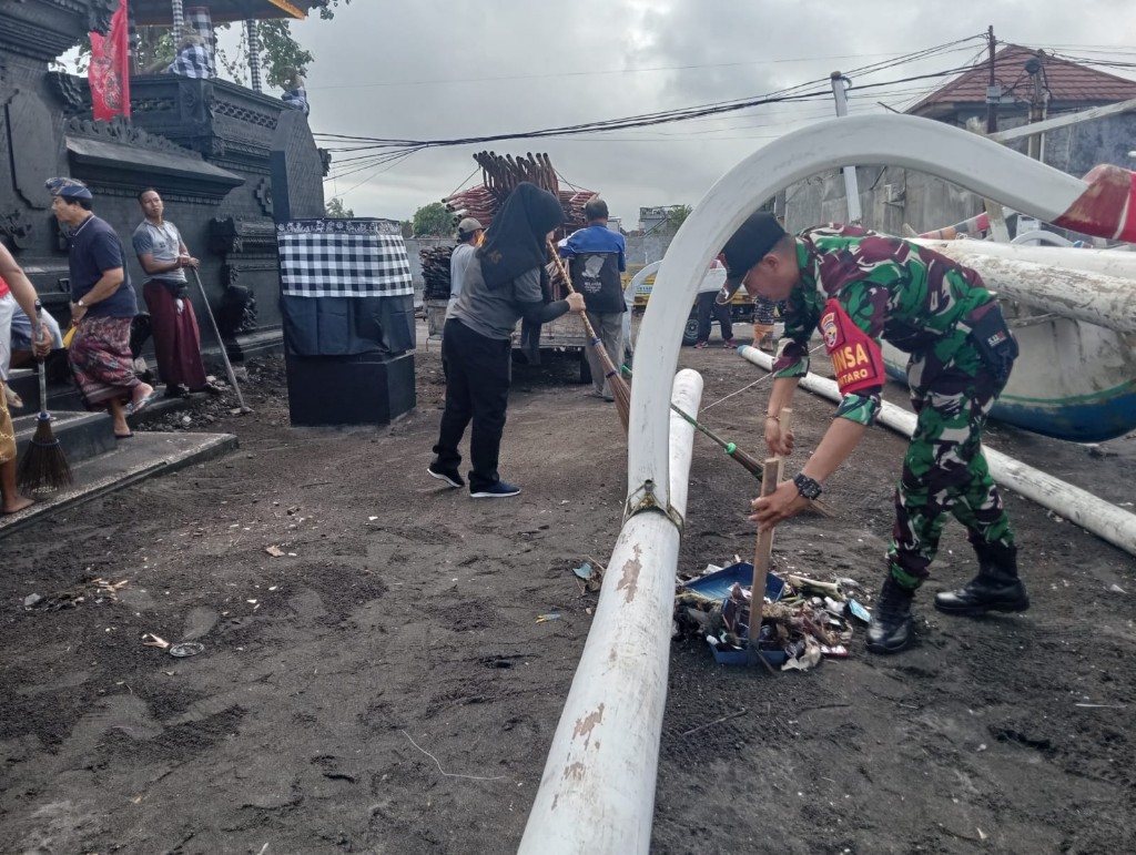 Babinsa Kelurahan Bintaro, Serda I Gede Puja Diarsa yg mengambil bagian bersama Camat Ampenan, Muzakir Walad, aparat kelurahan, Linmas, serta para tokoh adat dan pengemong pura.