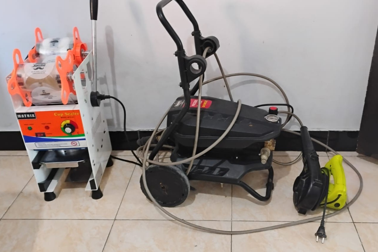Setelah penangkapan, tim juga berhasil menemukan barang bukti yang disembunyikan di rumah FI. Barang bukti yang berhasil diamankan meliputi 1 unit cup sealer berwarna putih oranye merek Matrix, 1 unit alat steam cuci motor berwarna hitam merek Reaim, dan 1 unit vacuum cleaner berwarna hijau.