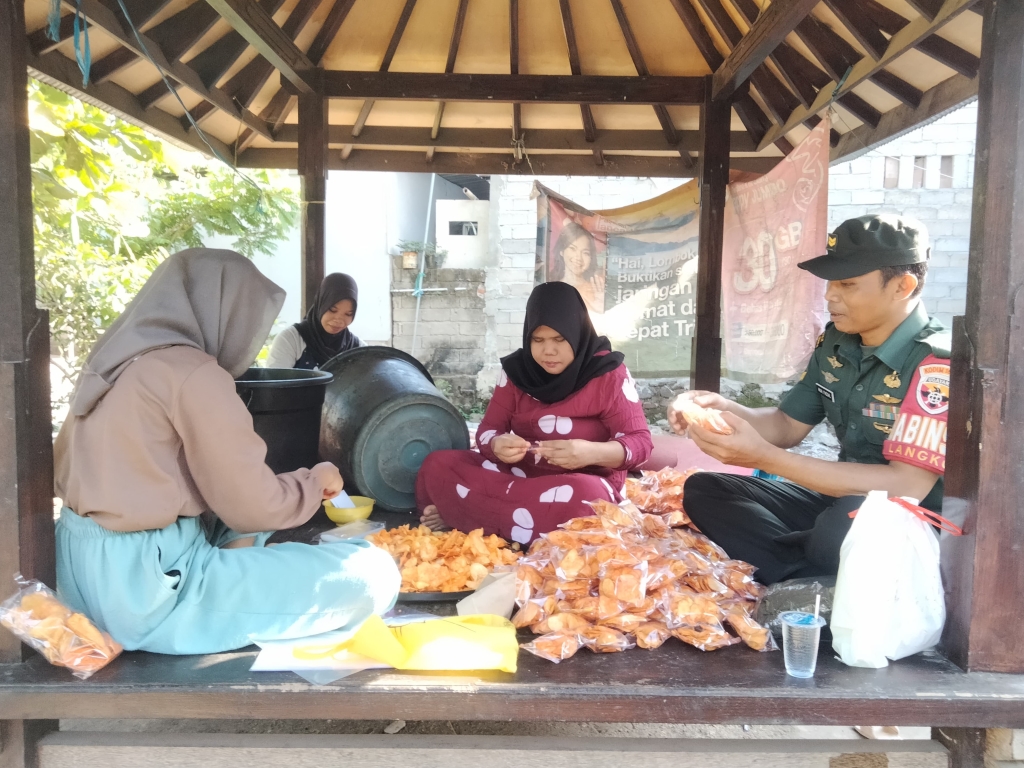 Babinsa Langko, Sertu Muhammad Faesal melaksanakan komunikasi sosial (Komsos) bersama pelaku Usaha Mikro, Kecil, dan Menengah (UMKM) kripik singkong di Dusun Sangiang, Desa Langko, Kecamatan Lingsar, Lombok Barat, Kamis (3/7/2025).