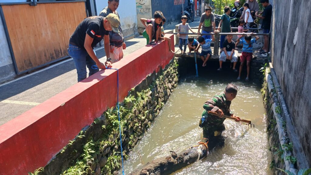 Kegiatan ini dilakukan sebagai respons atas banjir yang sempat melanda wilayah tersebut. Dengan semangat gotong royong, Babinsa bersama masyarakat bahu-membahu mengangkat tumpukan sampah rumah tangga dan ranting pohon yang menyumbat aliran air di bawah jembatan.