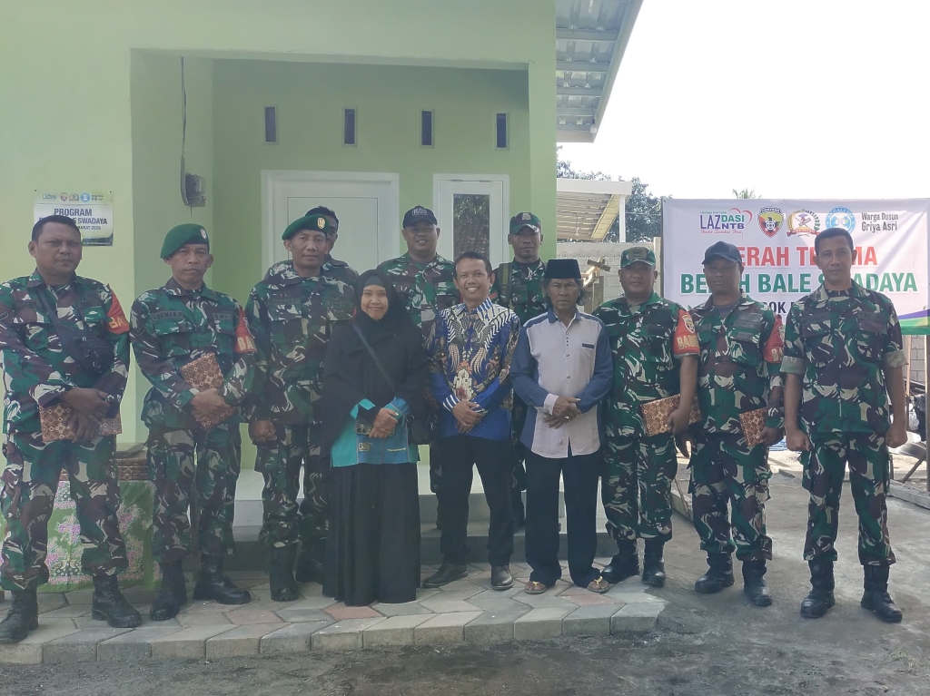 Lombok Barat, NTB — Wujud kepedulian terhadap warga kurang mampu kembali ditunjukkan melalui kolaborasi antara TNI dan lembaga sosial di Dusun Griya Praja Asri, Desa Jatisela, Kecamatan Gunungsari, Kabupaten Lombok Barat (Lobar), Nusa Tenggara Barat (NTB). Telah dilaksanakan serah terima Bale Swadaya hasil bedah Rumah Tidak Layak Huni (RTLH) oleh Lembaga Amil Zakat Dompet Amal Sejahtera Ibnu Abbas (Lazdasi) NTB untuk warga atas nama Bapak Aripin, Selasa (29/7/2025).