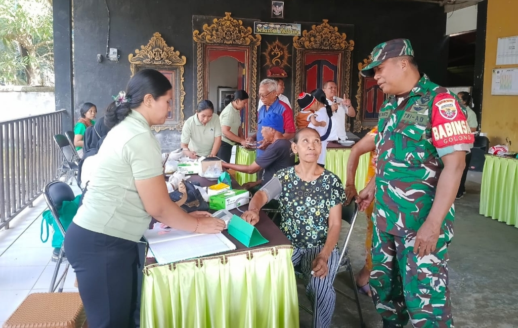 Rasa kebersamaan yang kental antara Babinsa dengan warga binaannya terlihat jelas. Para ibu hamil menerima buah-buahan segar sebagai tambahan gizi, balita mendapatkan suntik vitamin dan penimbangan, sementara para lansia dengan sabar menunggu giliran pengecekan tekanan darah.