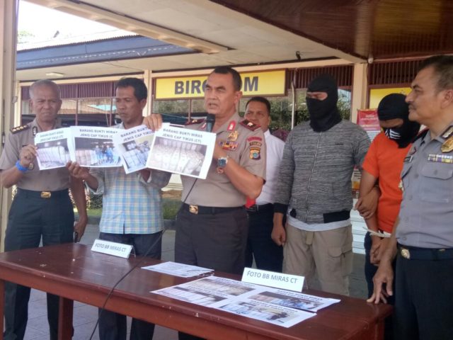 Hal itu ungkap oleh Kapolda Papua Barat, Brigjen Pol Rudolf Albert Rodja saat press realase, Selasa (24/10/2017) di Mapolda Papua Barat mengatakan, Diresnarkoba Polda Papua Barat, berhasil menangkap pelaku pemilik miras jenis Cap Tikus yang berinisial HSH.